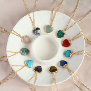 Celebrate your birth month with the Birthstone Heart Necklace, a timeless piece designed to reflect your individuality and inner beauty. Featuring a heart-shaped natural gemstone, each necklace is delicately framed in gold-tone detailing, representing the unique charm of every birthstone. Whether worn as a personal keepsake or gifted to someone special, this necklace is a beautiful symbol of love, luck, and connection.