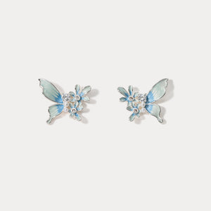Graceful blue butterflies rest gently atop blooming flowers, forming a delicate garden vignette right on your ears. Blending the elegance of nature with a hint of playful charm, these earrings bring a vibrant pop of colour and a serene, whimsical touch to any ensemble.