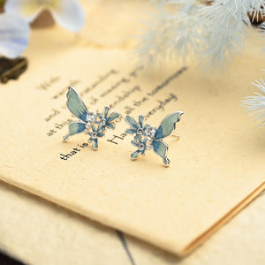 Step into a world of wonder with these captivating Blue Butterfly Flower Earrings.