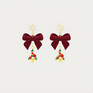 Designed with luxurious bows, gold snowflake accents, and sparkling Christmas tree dangles, these earrings are a festive addition to any holiday ensemble.