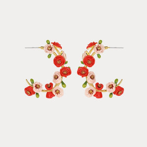 Add a touch of nature's elegance to your ensemble with these exquisite Corn Poppy Hoop Earrings. Delicately crafted with vibrant red and soft pink poppy flowers, these hoops are a celebration of floral beauty and intricate craftsmanship. Each flower is adorned with golden accents, bringing a subtle yet luxurious shine to your look.