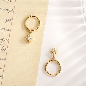 Featuring a delicate star-shaped charm adorned with sparkling diamonds, these gold-tone hoops exude elegance and charm. Perfect for both casual wear and evening occasions, these earrings are your go-to accessory for a dazzling statement.