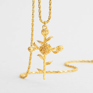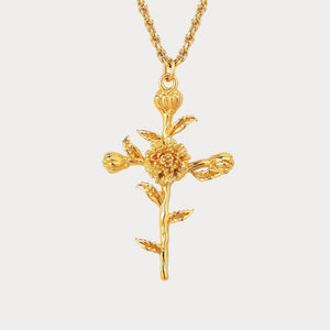 Celebrate creativity and warmth with the October Floral Cross Necklace. Adorned with vibrant marigolds, this design represents determination, cheer, and light. A perfect gift for October birthdays or those drawn to bold beauty.