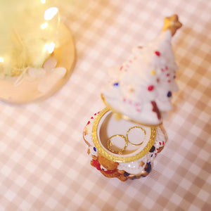 Add a touch of festive charm to your holiday decor with these delightful Fuzzy Bear Christmas Tree Trinket Boxes. Each trinket box is beautifully crafted in the shape of a Christmas tree, adorned with intricate holiday decorations, candy canes, and a star on top. At the base, a cute fuzzy bear holds a festive stocking, adding a cozy, whimsical touch. Available in pink, green, and white, these trinket boxes are perfect for storing small treasures or as a charming holiday gift.