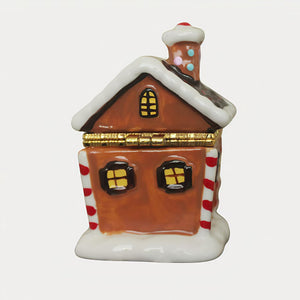 Featuring intricate details like colorful candy canes, a festive wreath, and an adorable gingerbread figure at the entrance, this piece captures the cozy essence of Christmas. The hinged lid opens to reveal a small compartment, perfect for storing tiny treasures or gifting holiday surprises.