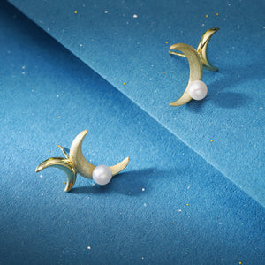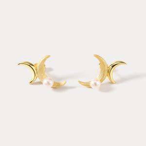 Capture the elegance of the cosmos with these Gold Double Moon Earrings. Featuring a dual crescent moon design adorned with a luminous pearl, these earrings exude celestial sophistication. Perfect for elevating any outfit with a touch of the universe.