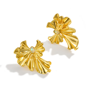 Graceful and radiant, the Gold Ginkgo Leaf Earrings embody the timeless beauty of nature’s artistry. Inspired by the delicate ginkgo leaf, each earring is sculpted in polished gold tones with flowing, organic curves that reflect light with every movement. Elegant yet distinctive, these earrings bring a touch of sophistication and natural charm to any ensemble, perfect for both day and evening wear.