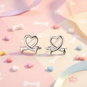 Sweet and playful, these heart-shaped dachshund stud earrings celebrate loyal love in the cutest way. The smooth silver finish and charming dog silhouette make them a delightful everyday accessory—perfect for dog lovers and anyone who believes love always follows close behind.