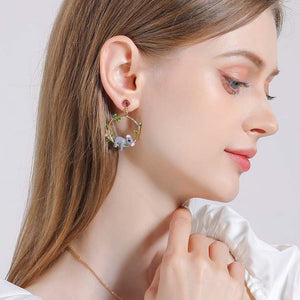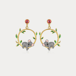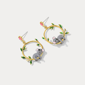 These delightful earrings feature adorable enamel koalas, each nestled within a golden hoop adorned with delicate green leaves. Crafted from 18K gold-plated brass, these earrings are both lightweight and comfortable, making them perfect for all-day wear. The vibrant enamel colors and intricate details capture the playful essence of koalas, adding a touch of nature-inspired elegance to any outfit. Ideal for animal lovers and those who appreciate unique, statement jewelry.