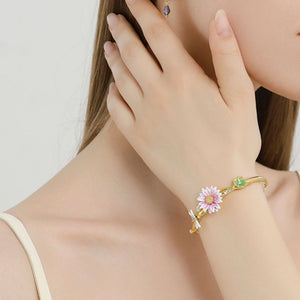 Crafted from high-quality materials, this elegant piece features a stunning pink lotus flower and delicate dragonflies, all exquisitely hand-painted with enamel. The 18K gold-plated accents and shimmering crystals add a touch of luxury, making it perfect for both everyday wear and special occasions. The adjustable chain ensures a comfortable fit, while the intricate design evokes a sense of nature's serene beauty.