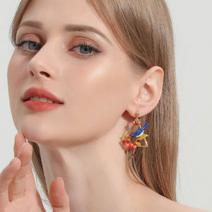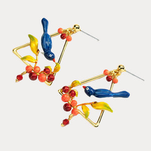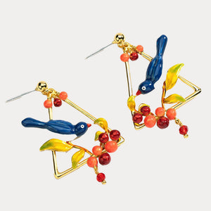 The vibrant Magpie are beautifully adorned with berries and golden leaves, epitomizing Parisian elegance. Each enamel detail is meticulously crafted, showcasing flawless colors and intricate design. Perfect for spring and summer, these earrings add a touch of retro sophistication to any outfit, making them a timeless addition to your jewelry collection.