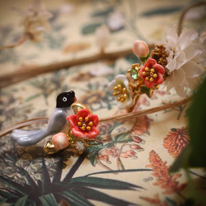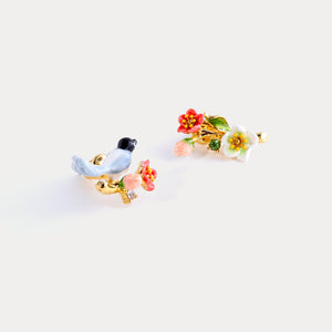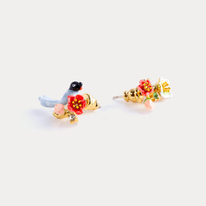 These charming earrings feature a lively magpie perched amongst colorful blooms, brought to life with intricate enamel detailing. Perfect for adding a touch of nature-inspired elegance to your style.