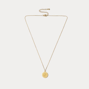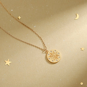 Inspired by ancient celestial motifs, this octagon coin necklace showcases an intricately engraved star design surrounded by sparkling crystals. A perfect blend of vintage charm and modern elegance, it's a versatile addition to any jewelry collection.