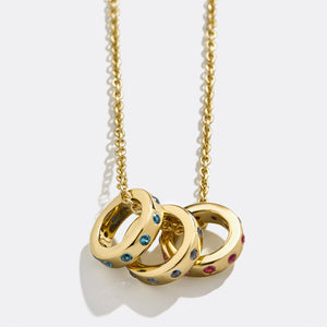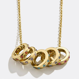 Create a necklace as unique as you with our Personalized Birthstone Necklace! Featuring elegant gold rings adorned with your choice of sparkling birthstones, this customizable piece lets you celebrate your story, your loved ones, and your special moments. Mix and match birthstones to design a meaningful keepsake that shines with personalized elegance.