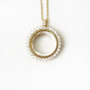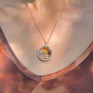 The Personalized Radiant Charm Box Necklace is crafted to dazzle with a bold burst of brilliance. Encircled by a radiant crown of shimmering stones, the faceted glass window offers a peek into your most meaningful charms and treasures. With its refined hinge opening, this locket allows you to curate a truly one-of-a-kind story — a luxurious fusion of sentiment and sparkle.