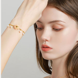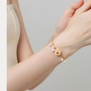 Enhance your jewelry collection with this elegant Pink Verbena Bracelet. Featuring delicately crafted pink verbena flowers and lustrous pearls, this piece radiates sophistication and charm.