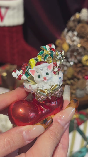Home All Jewelry Santa's Christmas Boot & Cat Trinket Box