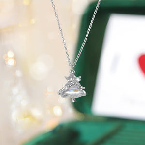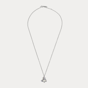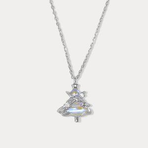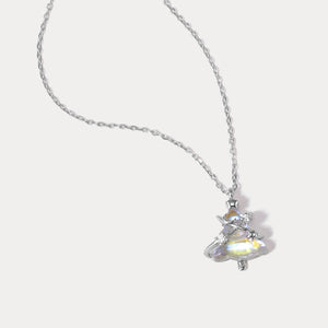 Crafted with a shimmering silver finish, the pendant showcases a delicate Christmas tree adorned with subtle iridescent accents and star details. Perfect for adding a festive sparkle to any outfit, this necklace makes a timeless holiday accessory or a thoughtful gift.