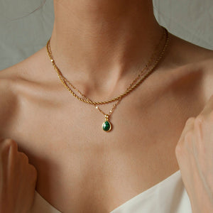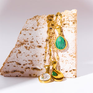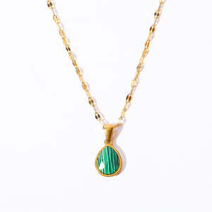 Infuse your style with earthy elegance through our Teardrop Turquoise Necklace. Featuring a mesmerizing Turquoise stone set in a radiant gold teardrop frame, this piece captures the beauty of nature in every swirl. The rich green hues and organic patterns of the stone make each necklace truly one of a kind. Perfect for layering or wearing solo, it’s a timeless accessory that brings a grounded yet luxurious touch to any look.