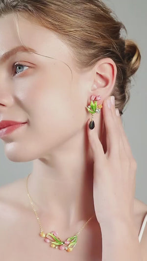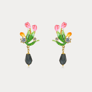 Featuring delicate tulip blossoms crafted in vibrant enamel. These earrings capture the essence of spring, adding a touch of natural elegance and color to any look, perfect for those who appreciate floral-inspired jewelry.
