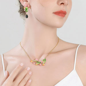 This necklace features intricately designed tulip flowers in vibrant enamel hues, delicately arranged to create a graceful and elegant look. Perfect for adding a touch of springtime charm to any outfit, it's a must-have for nature lovers and jewelry enthusiasts alike.