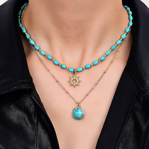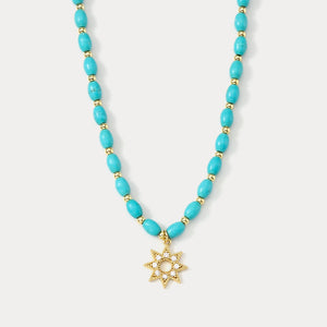 Set your style in motion with our Turquoise Beaded Compass Necklace. Blending celestial charm with a spirit of adventure, this piece features a compass-inspired pendant adorned with artificial turquoise and sparkling cubic zirconia. The 18K gold-plated brass chain shimmers like sunlight on the sea, making it the perfect companion for beach days or everyday elegance. Let this necklace be your guiding star—stylish, symbolic, and full of summer soul.
