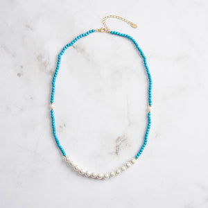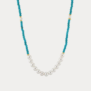 Elevate your look with the timeless charm of our Turquoise Pearl Necklace. Featuring polished turquoise beads in vivid blue-green tones paired with luminous pearls, this elegant piece blends bold vibrancy with classic grace.
