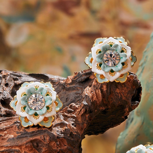 Embrace inner peace with the Zen Floral Symphony Earrings — a serene blend of balance and elegance. Featuring layered lotus-inspired petals in soft jade green, ivory, and gold, these earrings radiate harmony and sophistication. A sparkling crystal center adds a touch of brilliance, symbolising clarity of mind. Perfect for elevating everyday looks or bringing a graceful glow to special moments.