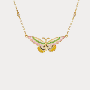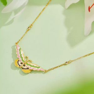 Showcasing a beautifully detailed butterfly in pastel pink, green, and golden enamel, this Butterfly Necklace captures the whimsical elegance of nature. The delicate chain is adorned with sparkling crystal accents, adding a subtle shimmer to the design. Perfect for layering or wearing solo, it’s a graceful accessory that brings a touch of colour and charm to any look.