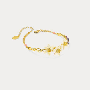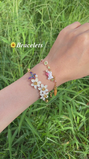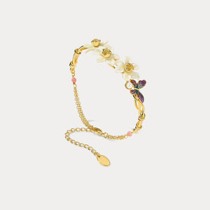 This bracelet exudes a sense of natural beauty with its intricate design. Featuring a heart-shaped pendant with a delicate enamel butterfly and surrounded by tiny pearls, this gold-plated bracelet is the perfect accessory for any occasion. It adds an artful, exclusive touch to any ensemble.