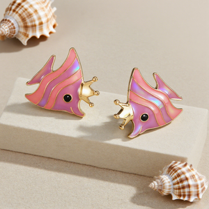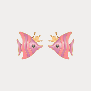 Add a touch of playful royalty to your style with these Pink Crown Fish Earrings. Featuring a vibrant pink enamel fish design topped with a golden crown, they radiate charm and whimsy. The glossy finish and gold-tone accents make them shine beautifully, while their fun, ocean-inspired look is perfect for brightening up any outfit. A delightful choice for sea lovers and those who enjoy unique, statement jewellery.