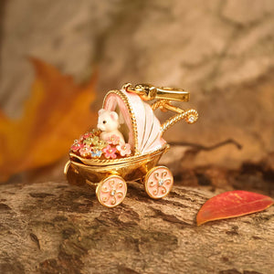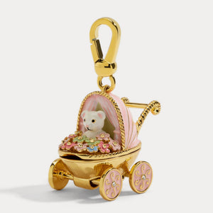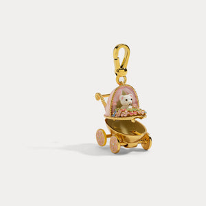 This pendant, crafted with meticulous care, features enamel applied at high temperatures, with artisans adding colors layer by layer. An adorable bear sits in a stroller, symbolizing the cherished dreams of our childhood. This genuine artisan creation aims to evoke the tender romance of youth. Treat yourself or a loved one to this exquisite piece from our Animal jewelry collection.