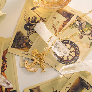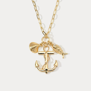 Bring the spirit of the sea to your style with our Anchor Shell Necklace. Featuring a detailed metal anchor paired with charming shell and fish motifs, this piece captures the essence of coastal beauty. Perfect for beach days or adding a seaside touch to your everyday look—it's a must-have for ocean lovers and sunseekers alike.