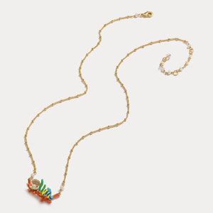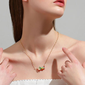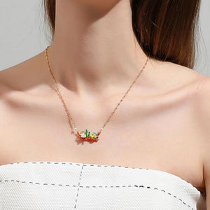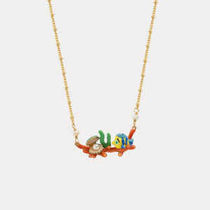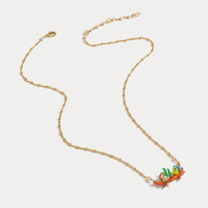 Crafted with precision from high-quality brass and enamel, this necklace features an intricately designed fish pendant. The 18k gold chain complements the vibrant enamel, making it an eye-catching accessory for any occasion.