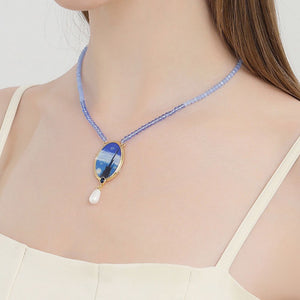 Capture the night sky’s allure with the Blue Starry Night Bead Necklace. Featuring an oval centerpiece inspired by swirling celestial patterns, this necklace is adorned with delicate blue beads and a dangling pearl accent. The gold-tone frame adds a touch of elegance, making it a perfect statement piece for any occasion.