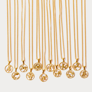 Wear the stars around your neck with the Celestial Zodiac Necklace—a timeless piece that connects you to the cosmos. Crafted in radiant gold, each pendant features an intricately designed zodiac symbol, representing destiny, personality, and cosmic energy.