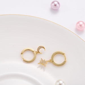 Contemporary and chic, these Moon and Star Earrings are designed to captivate. Featuring Cubic Zirconia, they sparkle brilliantly under any light, exuding grace, romance, and elegance. Pair them with your favorite outfit to become the center of attention. These earrings make a perfect gift for women who appreciate modern elegance.
