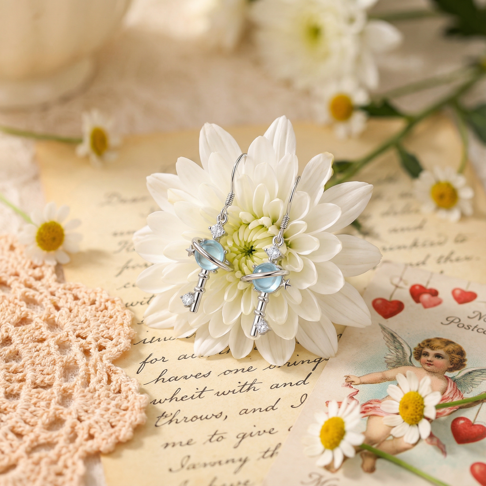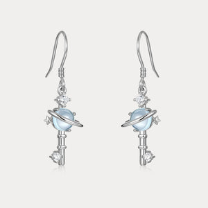 Capture the magic of the cosmos with the Saturn Halo Topaz Earrings. Each earring features a luminous blue topaz orb wrapped in a sleek Saturn-inspired ring, accented with tiny star and crystal details that shimmer like distant galaxies. Lightweight and gracefully dangling, they add a touch of celestial elegance to everyday outfits or evening looks.