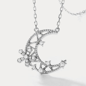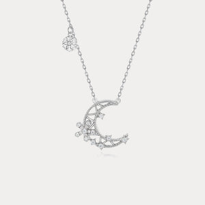 This enchanting piece features a crescent moon adorned with dazzling snowflake details and delicate stars. Crafted in silver tones, it’s an elegant accessory that brings a wintry sparkle to your outfit, perfect for any festive occasion.