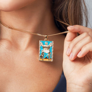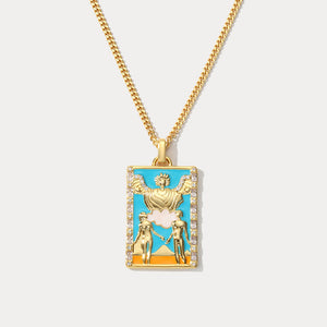 Accentuate any look with this elegant Tarot Card Necklace. Expertly crafted from durable brass, this captivating piece of astrology jewelry is the perfect gift for any occasion. Showcase your sophistication with this timeless and tasteful charm necklace.