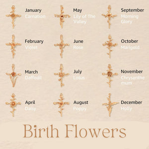 Each necklace combines the enduring power of the cross with the emotional depth of birth flowers, creating a piece that speaks to your faith, identity, and inner virtues.