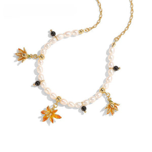 This stunning necklace combines delicate freshwater pearls, golden accents, and enchanting blackberry lily flower charms with striking black onyx beads. A perfect balance of classic elegance and botanical beauty, this piece is a versatile addition to your jewelry collection.