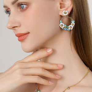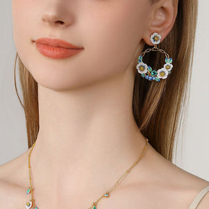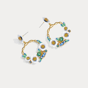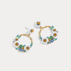 These captivating earrings feature delicate enamel beads in rich, juicy blueberry tones, elegantly dangling from sleek hoop silhouettes. Meticulously handcrafted with 18K gold-plated brass accents, they embody a harmonious fusion of artistry and nature's inspiration. The whimsical charm of these flower dangle earrings adds a playful touch to any ensemble, perfect for embracing the simple joys of life. Whether complementing a vibrant summer outfit or elevating a casual everyday look.