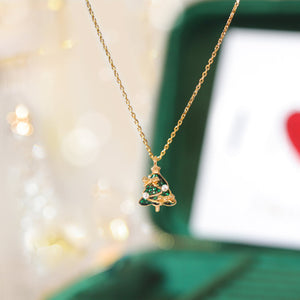 Highlighted by a gold-tone tree pendant adorned with emerald-green accents, delicate pearls, and charming bow details, this necklace exudes holiday cheer. Its elegant yet festive design makes it ideal for any holiday occasion.