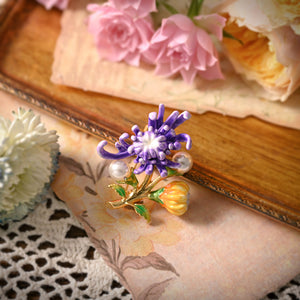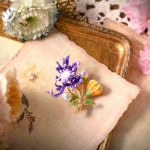 A delicate and enchanting piece, the Daisy Brooch features a vibrant combination of hand-painted enamel flowers and golden stems. Adorned with a lustrous pearl accent, this brooch captures the beauty of nature in a timeless design. Perfect for adding a touch of floral elegance to any outfit.