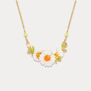 Discover the stunning Daisy Pendant Necklace, a masterpiece fashioned from 18K gold on brass, embellished with detailed enamel work. This necklace's charming design embodies the beauty of a lush meadow in bloom, bringing a natural sophistication to any outfit. Dangling from a fine chain, it serves as a classic adornment that seamlessly enhances your style.