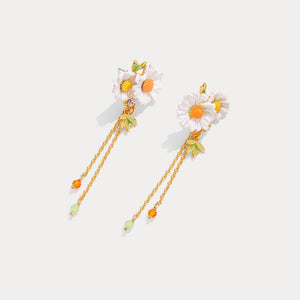 Elevate your style with the lively spirit of spring courtesy of our Daisy Tassel Earrings! Crafted from 18K gold on brass and enhanced with colorful enamel, these earrings showcase a delightful daisy motif complemented by elegant tassels for an extra pop of personality. Ideal for introducing a slice of serene charm to any look, they're guaranteed to bring a smile to your face.