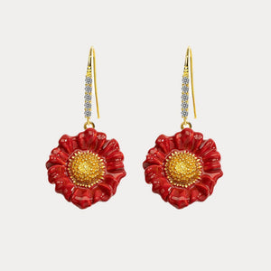 The "Red Daisy Earrings" feature vibrant red petals surrounding a golden center, embodying bold and playful floral charm. These earrings are a perfect way to add a pop of color and bring nature's beauty to your outfit.