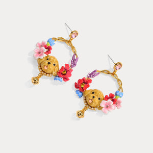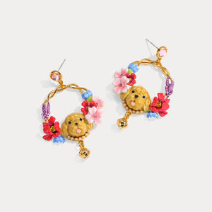 Celebrate your favorite breed with our charming Goldendoodle Dog Earrings. These delightful hoop earrings showcase adorable Goldendoodle faces, playfully dangling from 18k gold-plated brass hoops. The vibrant enamel brings these furry friends to life, making them the perfect pup-tastic accessory for any dog lover!