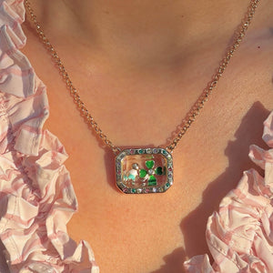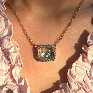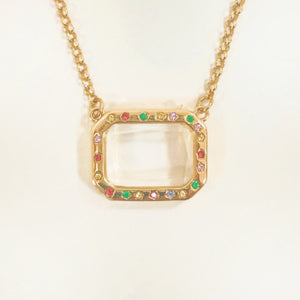 Celebrate love and memories with this Personalized Rectangle Charm Box Necklace . Surrounded by glimmering pink star-cut stones, the hollow interior can hold your mini keepsakes or tiny charms. The hinged design lets you open and customize it with ease—an enchanting blend of sentiment and shine.